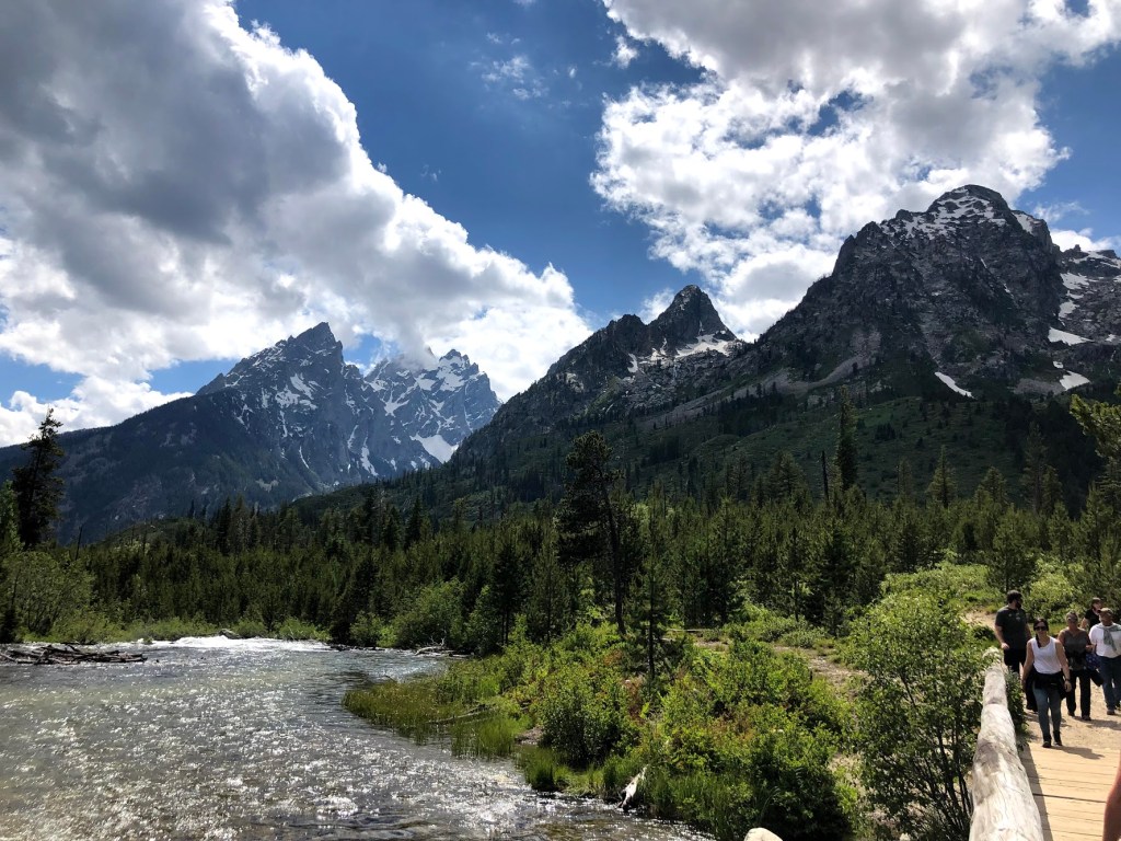 On one of our first few days at Grand Teton National Park, we took a ferry across Jenny Lake to the other side for a hike up to Inspiration Point. I don’t even think I was believing what my eyes were seeing on this hike. Mountains always blow me away, but the Tetons are something else. And the beautiful views of the lake topped it off! Though it’s a heavily trafficked trail, it’s totally worth it and lives up to the hype. Plus, it didn’t take us all day which was nice!